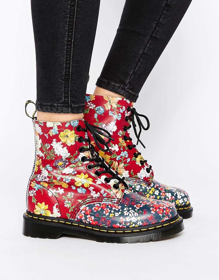 It is interesting to look at martinses with various prints: in a flower with the image of comic book characters and cartoons, with abstract drawings, flags of different countries. Fantasy designers know no bounds!