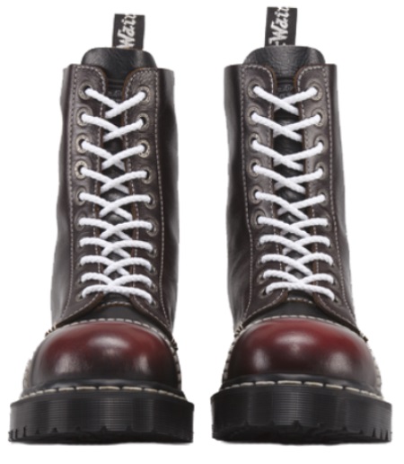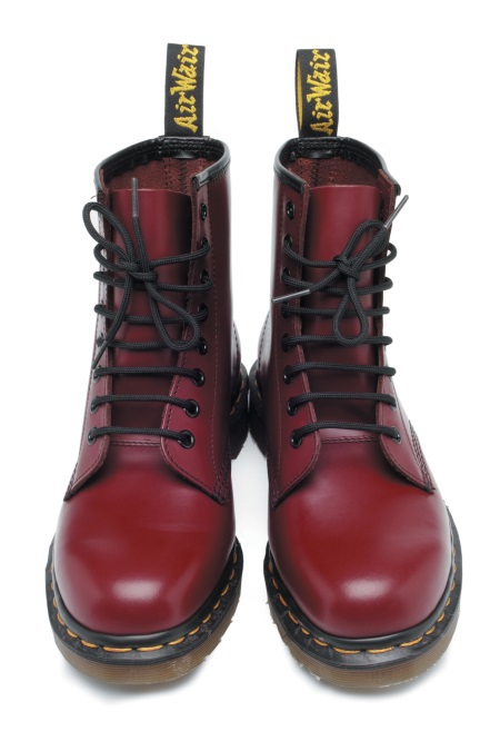 The first official Martins had such an appearance, the code of which today we mean the classic model: a rounded toe, a sole with a tread, a metal toe, 8 holes for laces, cherry color and a branded yellow line. On each pair was stitched strap with the words "AirWair".