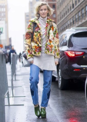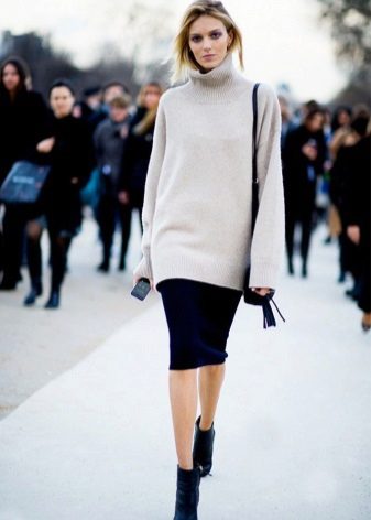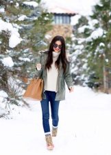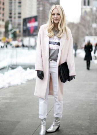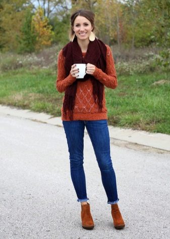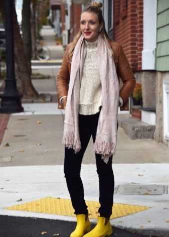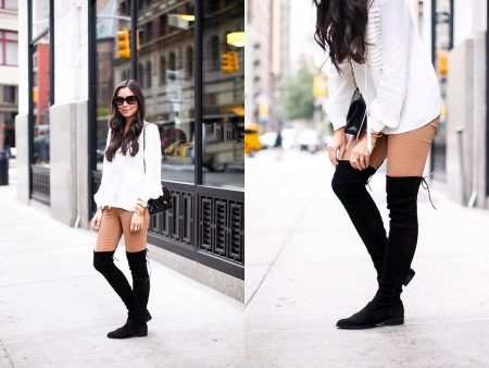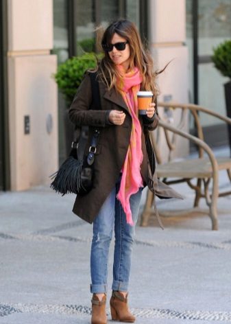 If the shoes are high, then this also provides for the creation of various images. Organically fit into a bow tucked or tucked jeans, tight pants, as well as skirts and dresses to the knee or slightly lower.