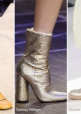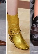 This is an unusual combination of colors, and rich decor, and material. Such elements as lightning, rivets, locks will be popular. Many prefer the boots on the tractor sole, but the most popular will be lacquered and chelsea.