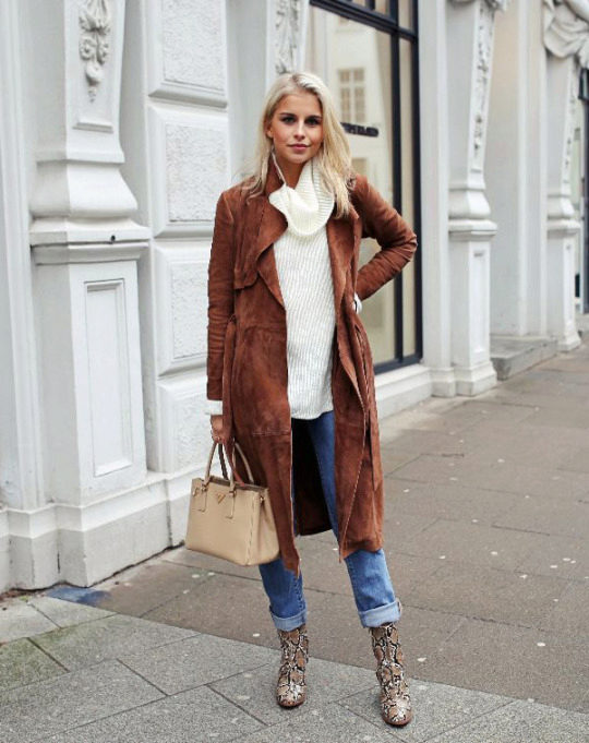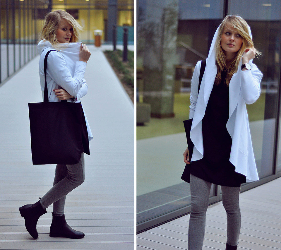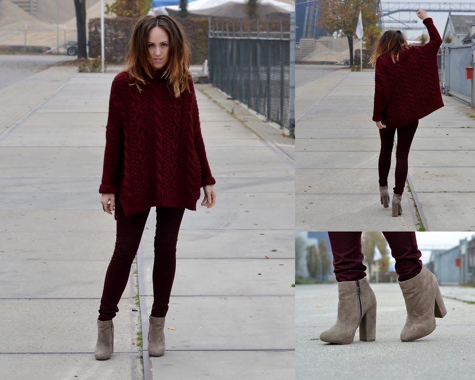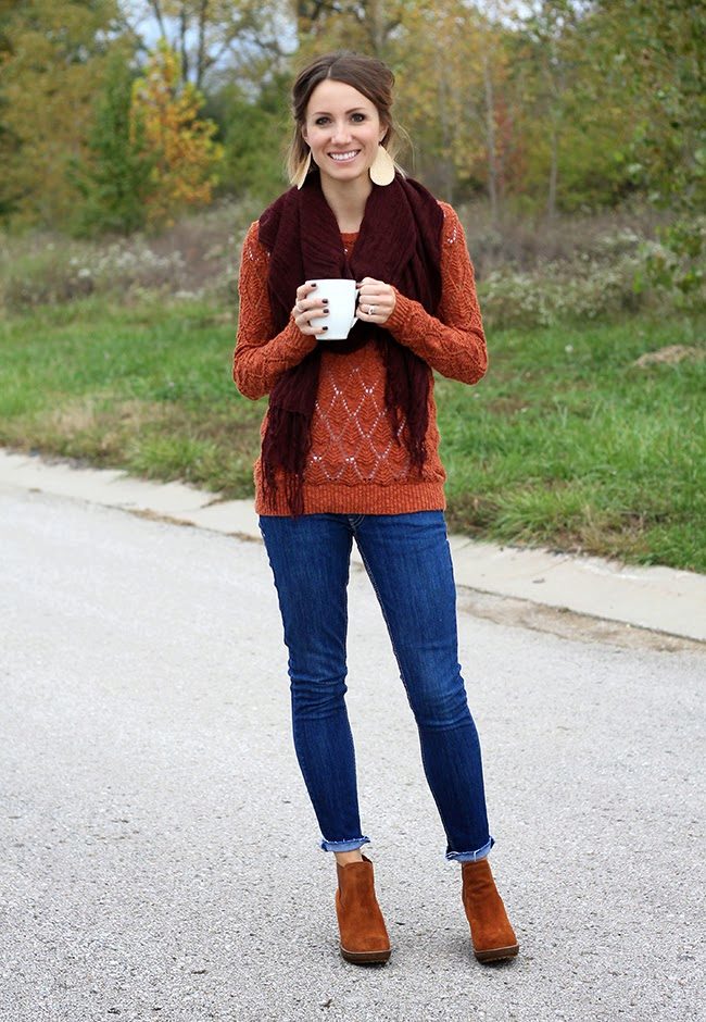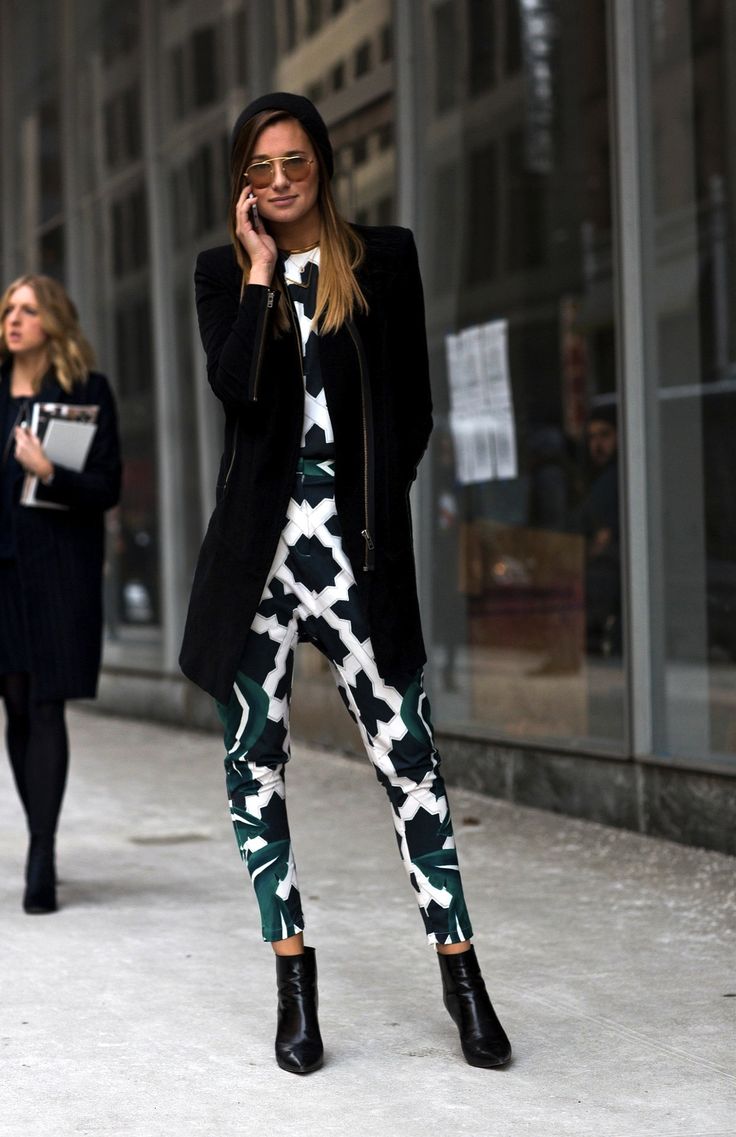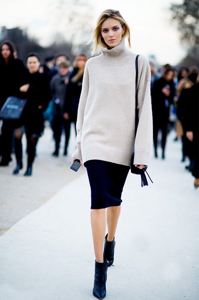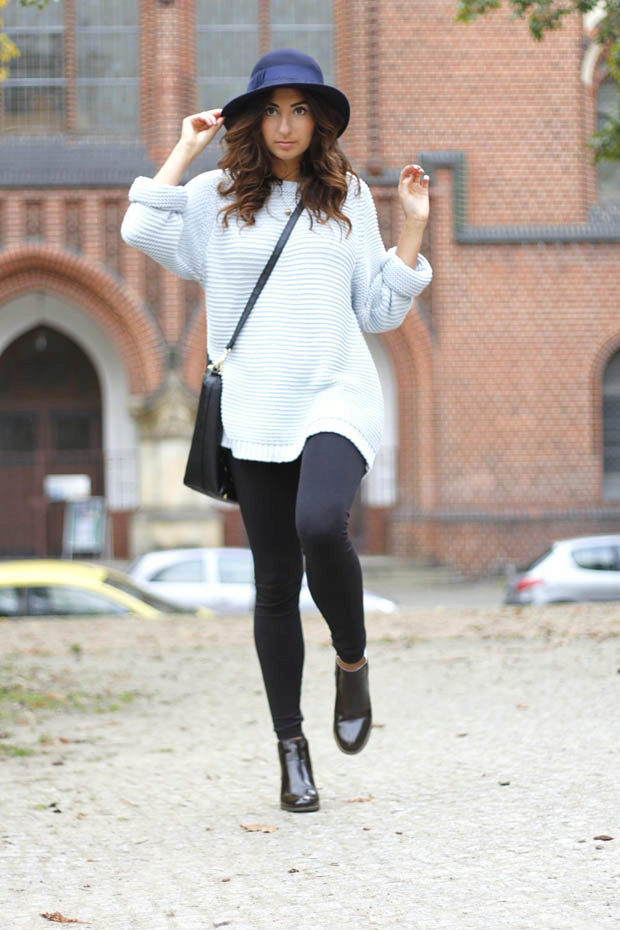 Tight pants or leggings in combination with a volume sweater and a chelsea will be an excellent combination for a walk around the city. A hat and a shoulder bag to make your look complete.