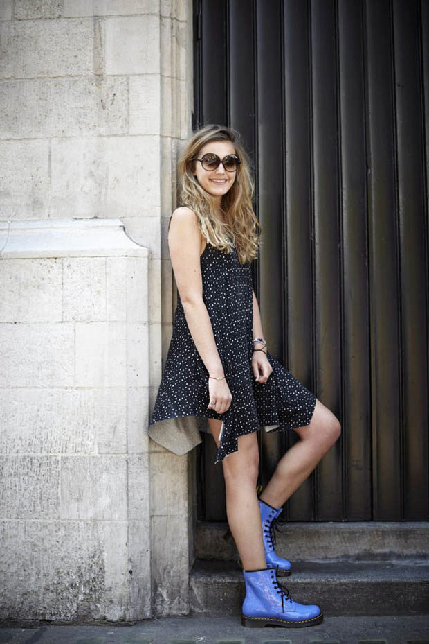 Girls who are not afraid of experiments can try to combine two styles at once, combining a light dress and military boots. They complement each other well and give an image of femininity.