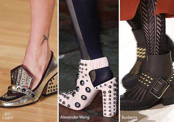 Metallic is another new trend of the 2017 season. Brilliant decor, zippers, and rivets are becoming mandatory elements of the new collections. Manufacturers Nina Ricci, Dolce & Gabbana, Burberry, Louis Vuitton are leading in the release of such models.