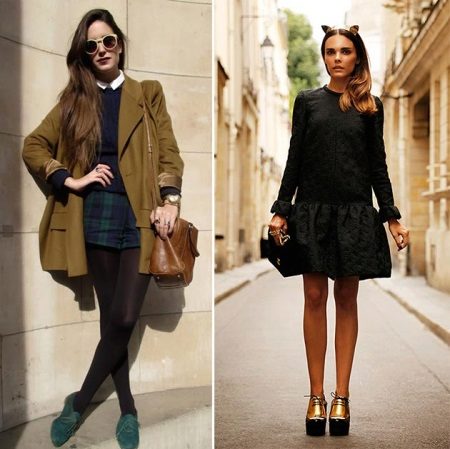 Loafers combine with many types of clothing, but the best option is tight pants or jeans, as well as short flying skirts.