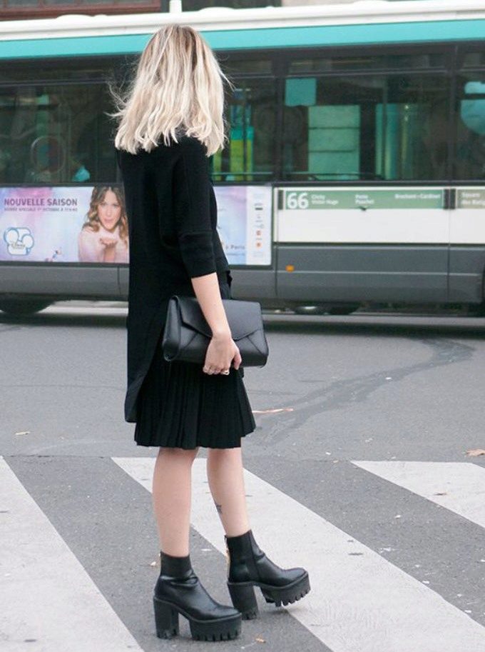 Given the fact that boots with thick soles combine at least two styles (casual and romantic), it is not difficult to choose certain clothes for them.