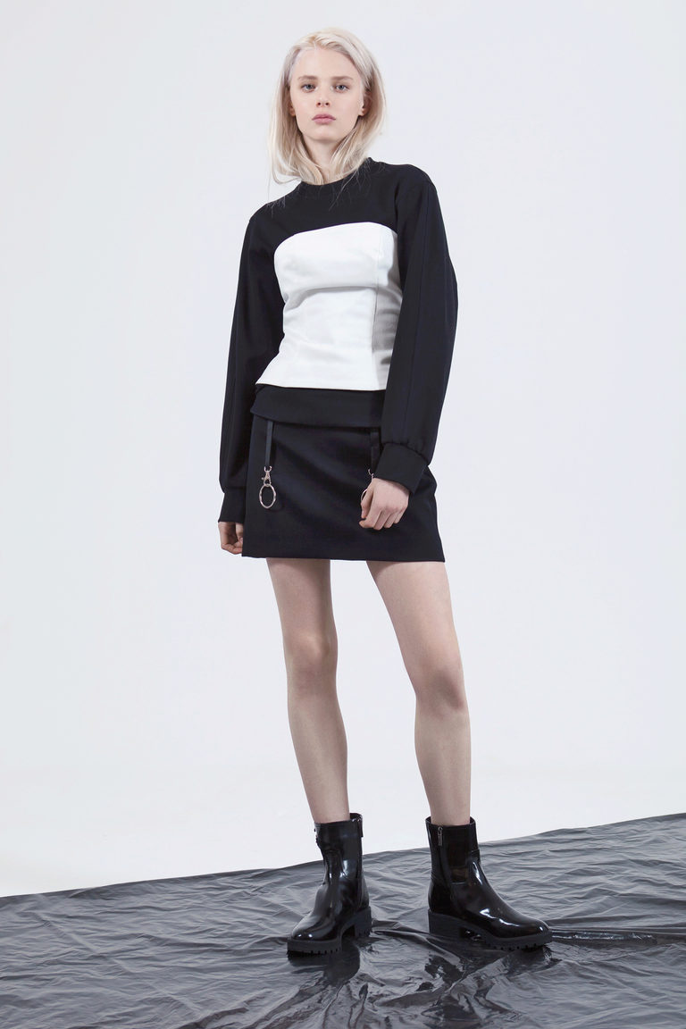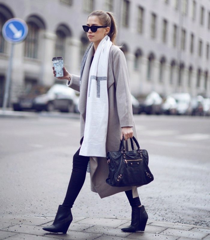 Restrained, balanced, one might even say, with a touch of classics, an image that will not leave indifferent romantic natures. Despite the bright pastels, the combination of the image itself was created, as it were, in contrasts: narrow trousers and massive tractor outsole; long shirt + jacket and a cropped sweater. This image looks very dignified and can be a great first step to world fashion trends.