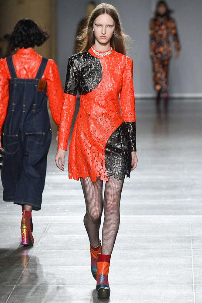 Of course, with the release of boots on the tractor sole on the world fashion podium, the variety of materials and textures for them is becoming more extensive. So, in stores you can often find women's shoes of this format, made in eco-leather, nubuck and textured leather. But it will never be simple shoes: they must always be decorated with drawings, all sorts of holes, punctures and spikes, hung with chains and buckles.