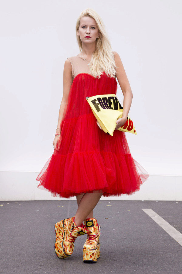 Almost classic American 90s. The more romantic the dress, the more underground the shoes should be. Of course, now all this is considered to be nothing more than a story, but having worn “berets” under a romantic girlish dress you can always stay in the trend.