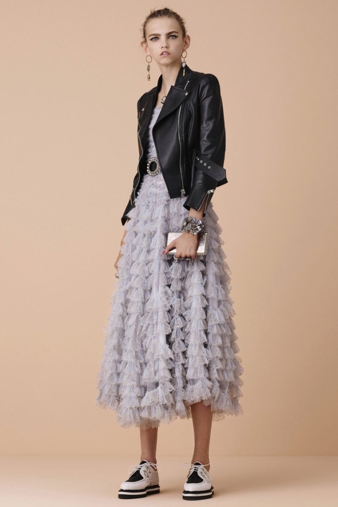 Chanel is always luxurious, elegant and elegant. Even oxfords on thick soles are made in such a way that only a princess can wear them, combined with a sweet romantic dress of medium length.