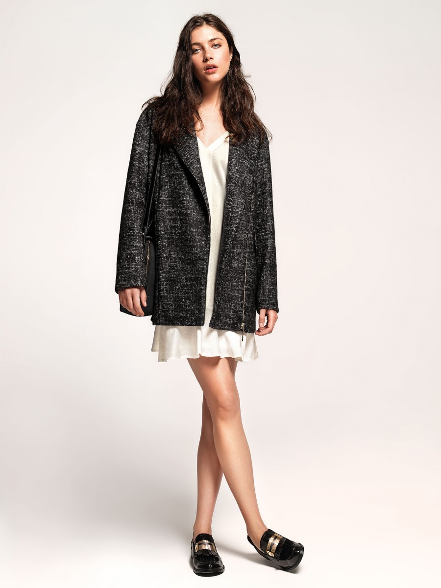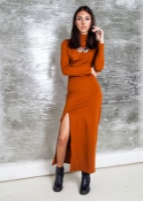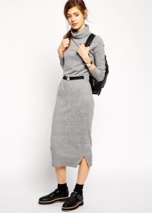 As a rule, such dresses have the simplest possible straight cut, which, due to the amazing texture and amazing appearance of the material, is able to emphasize the feminine silhouette of its owner. Such an element requires you to complement yourself with short boots of the type jodhpur on the heel or platform, which will ideally suit both the long dress and the mini dress.