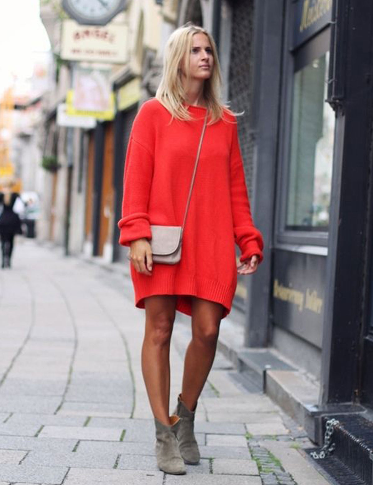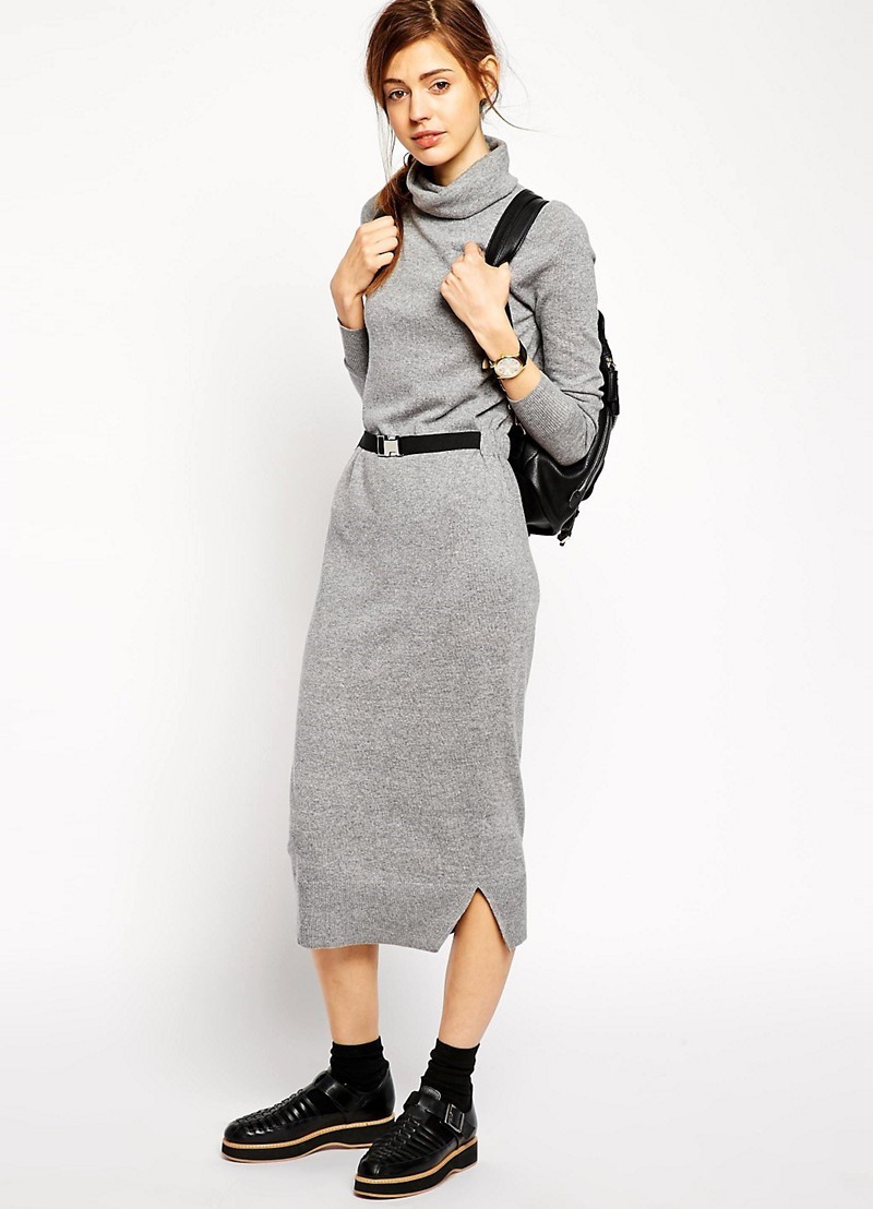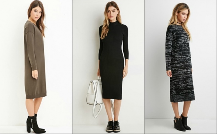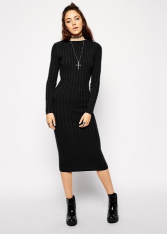 The color palette of the dress should not be bright. Ideal are such trendy shades of the current year as olive or marsh, milk or nude, blue-black or pale pink. Boots are best to pick a classic black or a few colors lighter than the color of the dress.