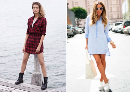 In this case, you should pay attention to such styles of dresses as polo, as well as products of A-silhouette mini length. They will ideally be combined with massive shoes on a flat sole with light shades. These dresses can also be fitted or have a straight silhouette.