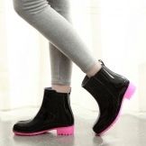 Looks impressive rubber shoes with bright leggings.