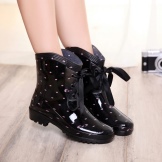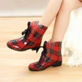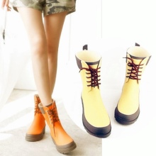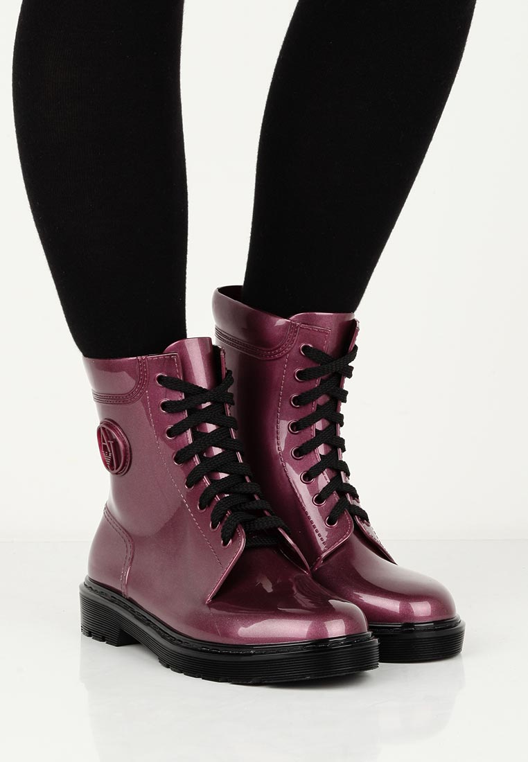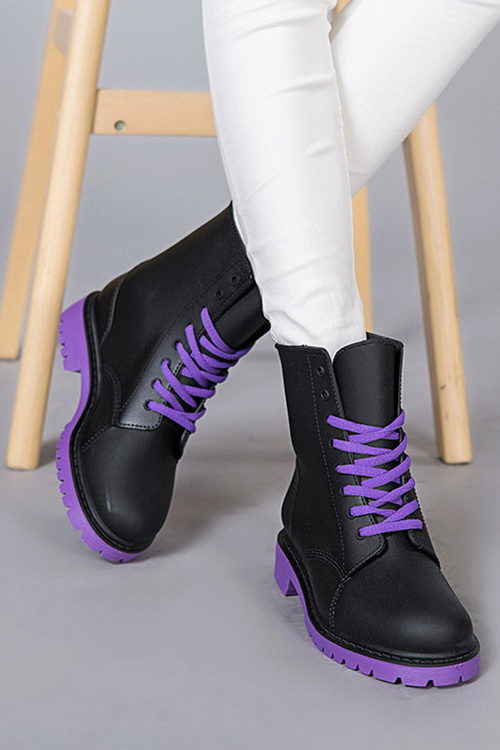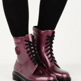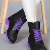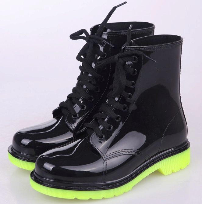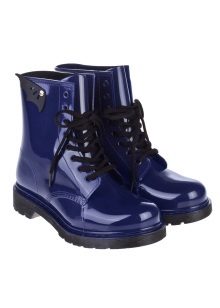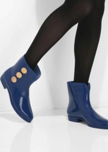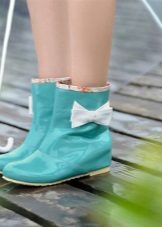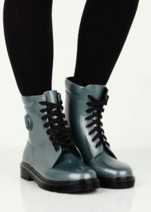 Rubber boots with a lacing or its imitation look interesting. This detail brings them closer to fashionable military-style shoes. Lacing can be found on both inflated and low models. It is the same color as the shoes, and can be a contrast.