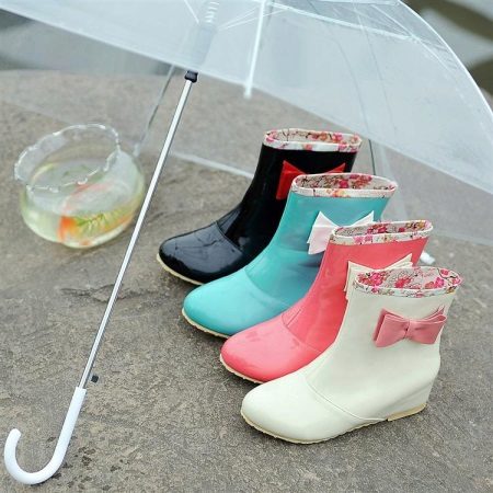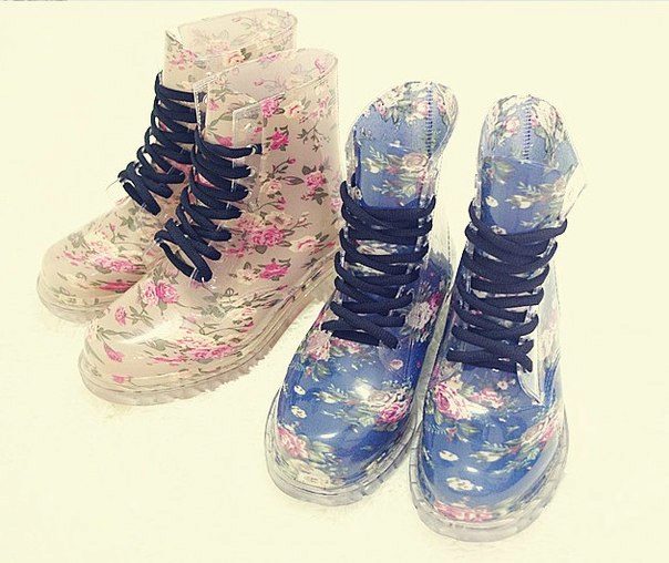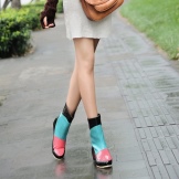 Stylists recommend, first of all, to pay attention to the overall appearance. If the clothes are made in bright colors, with drawings or prints, then the shoes should be chosen more stringent. If, on the contrary, the clothes are calm and monotonous, then the shoes may be with an original pattern or a brighter color. If you want to look fashionable and stylish, forget about the raincoats or regular jackets. Choose a raincoat or leather jacket for rubber boots and complement the look with an elegant umbrella, then you will be irresistible.