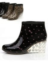 Despite the fact that rubber boots, at first glance, are ordinary and inconspicuous wardrobe parts, manufacturers offer us all new, innovative and bright solutions. Now you can easily find beautiful and stylish models of rubber shoes. Especially fashionable shoes are considered with a variety of decorations. This is what gives each pair of originality and uniqueness.