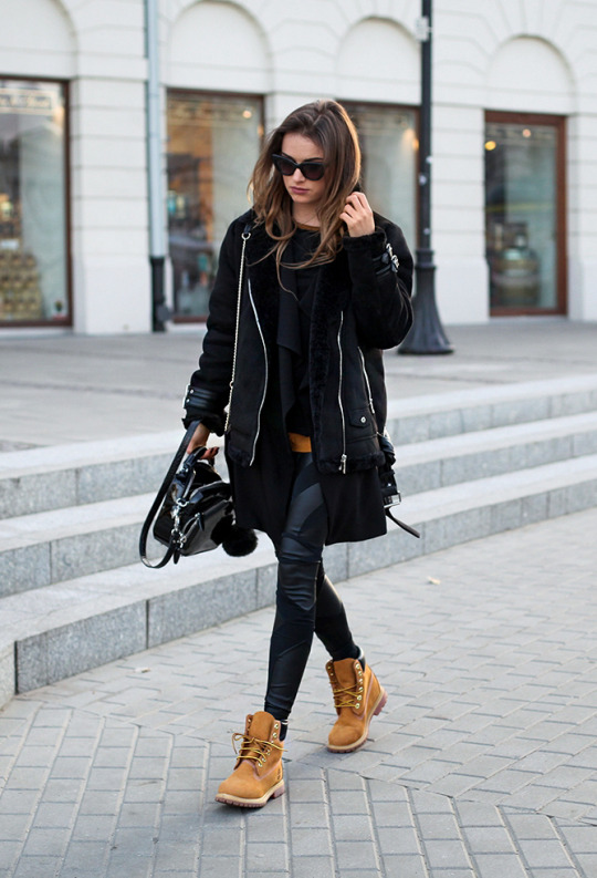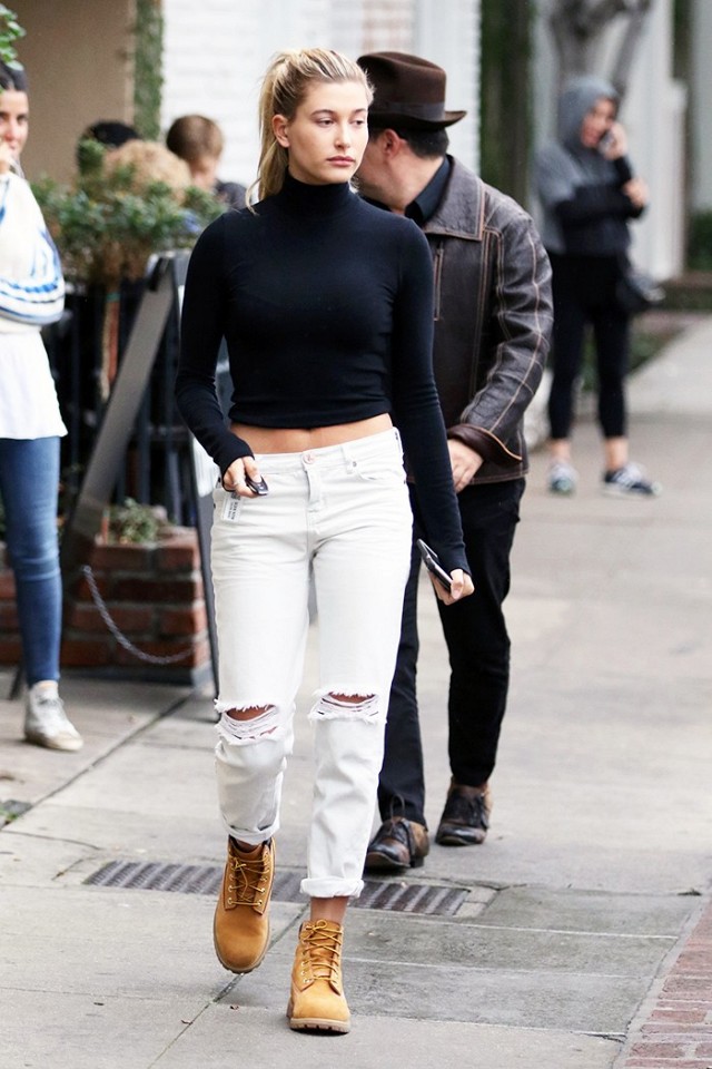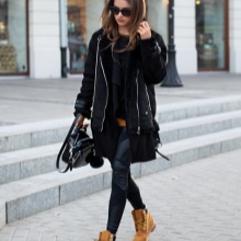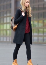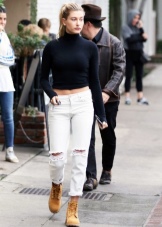 Fashionable shoes spectacular colors can fit in almost any outfit.The most successful combination will be with blue jeans (skinny or boyfriends), as well as jeans breeches and shorts. Upstairs you can wear a T-shirt, turtleneck or sweater. Warm leggings with a park or jacket will look spectacular with the Timberlands in a cool season.