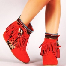 A feminine combination of denim shorts and open toe boots will look very impressive. Open shoes in red color will be in harmony with light dresses and sundresses.