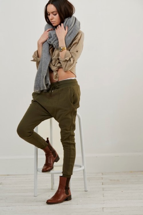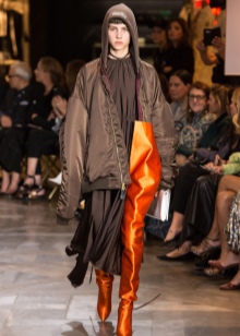 Female models can be worn with short pants, breeches and capris. Upstairs is recommended to wear loose shirts or fitted blouses. Deserts look harmonious with men's straight trousers and fitted jackets. Especially spectacular boots of red color will be combined with dark clothes of blue and gray.