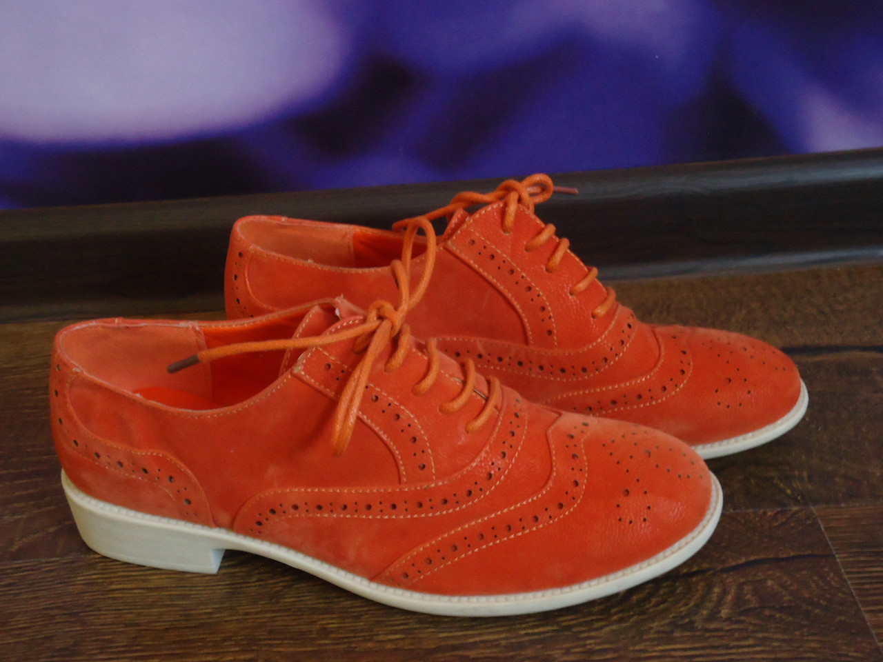 Stylish and feminine brogues are distinguished from oxfords by the presence of perforations. Such shoes are ideal for warm and dry weather. They look more flirtatious compared to classic oxfords.