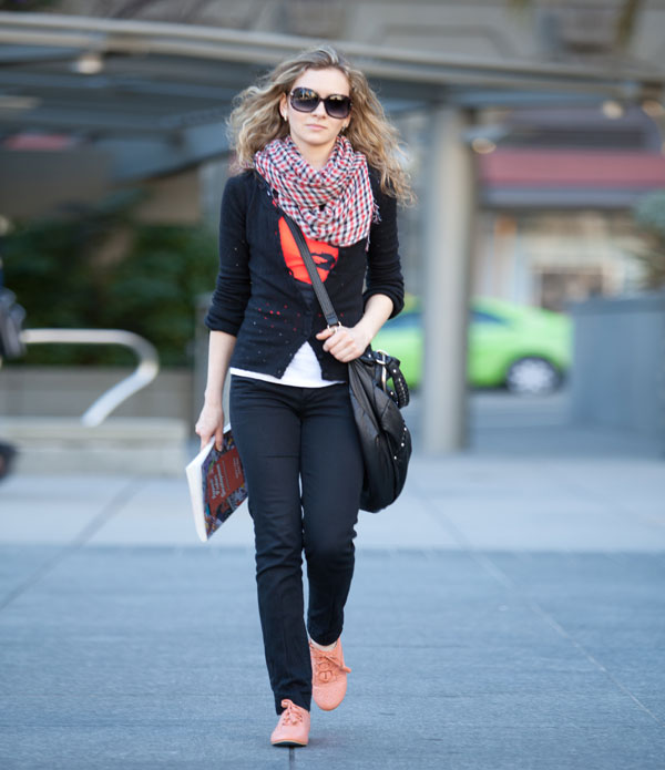 With comfortable red shoes you can wear skinny jeans or tight-fitting trousers, complemented by feminine cardigans and cloaks. Youth boyfriends in combination with laconic oxfords will look very interesting and original.