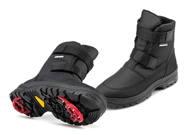 Of particular interest are winter boots with spikes on the sole.