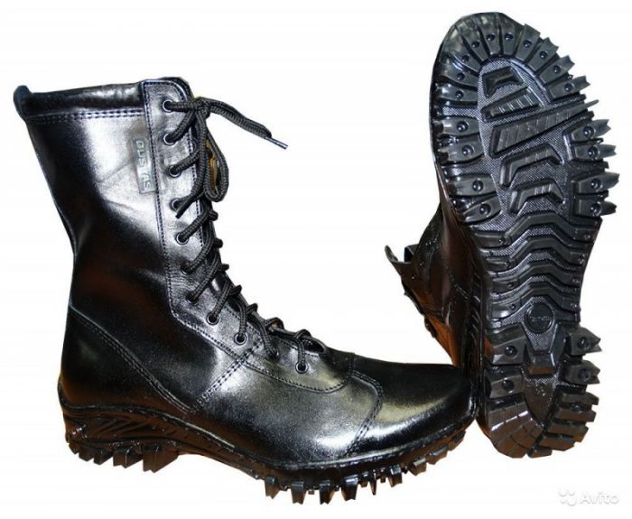 The spikes are located on the entire surface of the sole of the boot, including the heel area, thereby preventing its owner from slipping and falling on ice, being an indispensable option for residents of the northern regions.