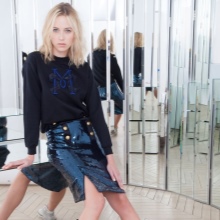 A fashionista can create a feminine look with non-standard shoes and skirts. For the warm season, you can choose a short or medium straight skirt (or pencil). The thing decorated with bright patterns and prints will look very bright and coquettish. For a colder season, you can pick up a skirt with a length just below the knee. It is better to refuse products in a floor as similar models will hide footwear.