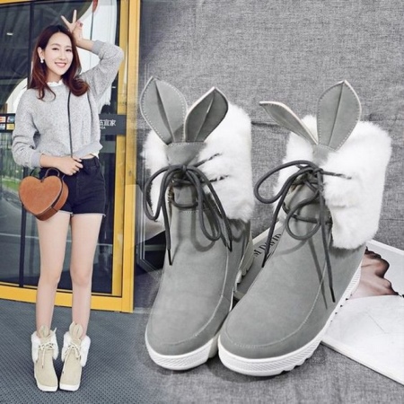 Leather jackets, insulated coats of medium length and trendy parks will look perfect with youth rabbit boots. For the frosty weather, you can choose not only the usual down jacket, but also a fluffy fur coat, sheepskin coat or a soft fur jacket. Such a plush outfit will allow you to create a very cute and gentle look.