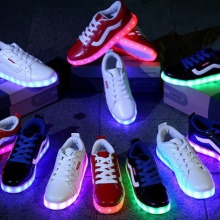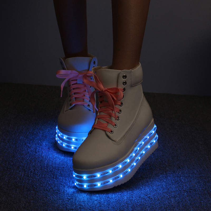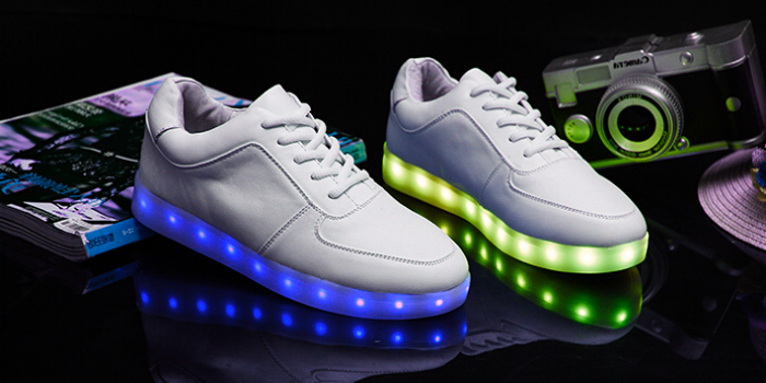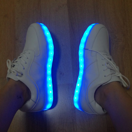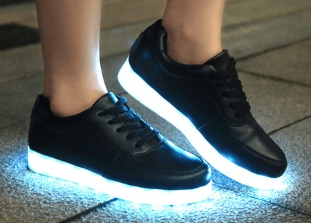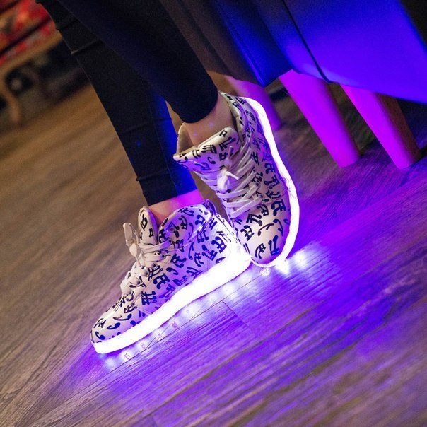 Later, LED strips with a USB cable for recharging began to be placed on the sole of sneakers or boots. It became possible to independently choose one of the proposed backlight modes - constant or flickering, with different time intervals and one of several possible colors: white, blue, red, green, purple, pink.