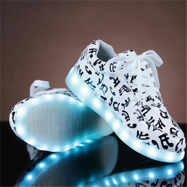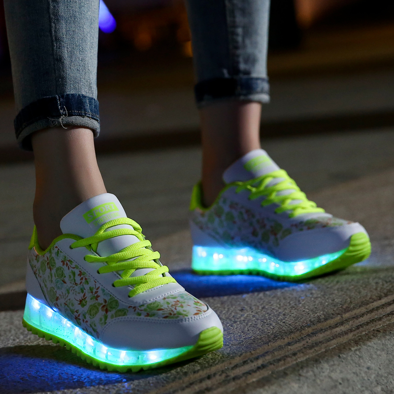 Luminous shoes are most often combined with clothing designed in casual, grunge, sports, youth style.