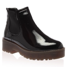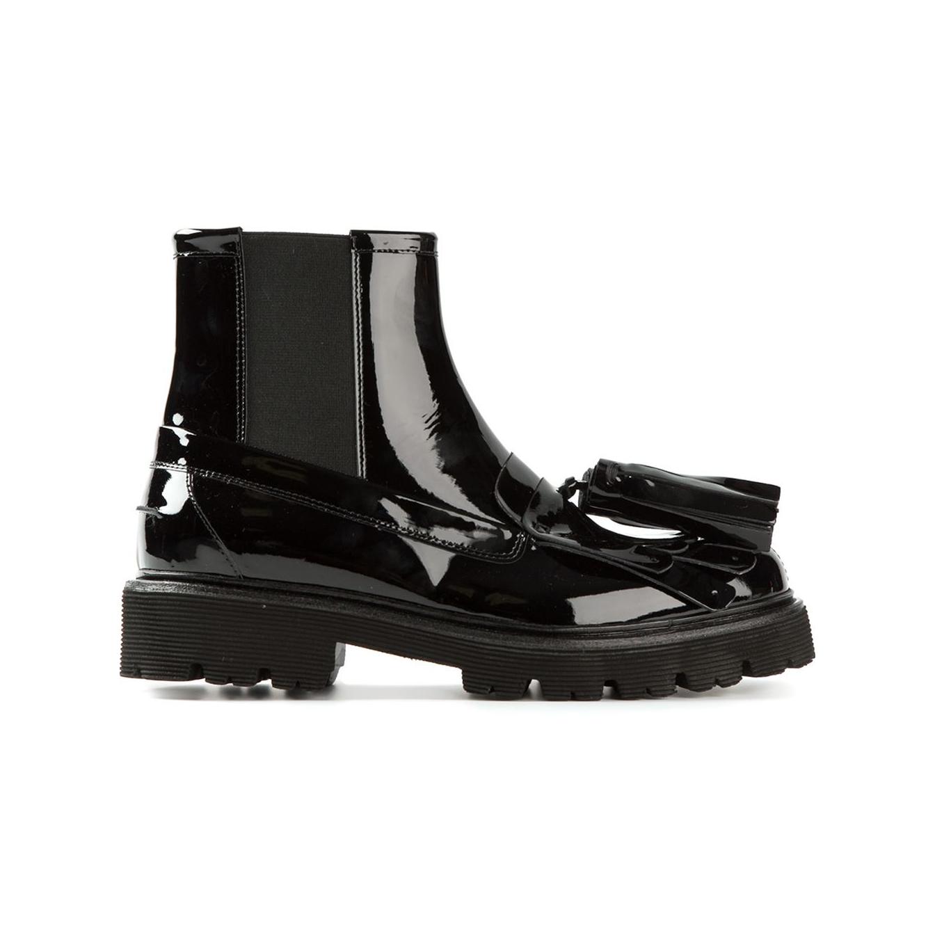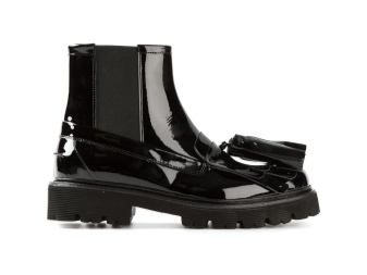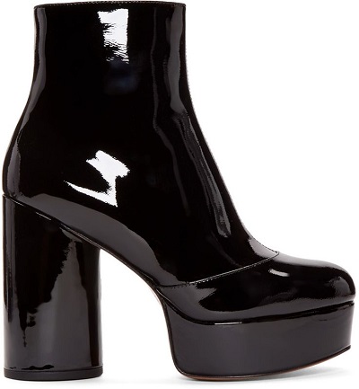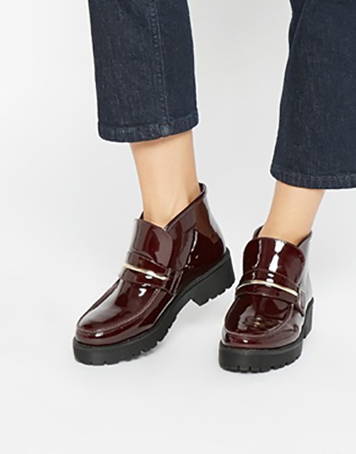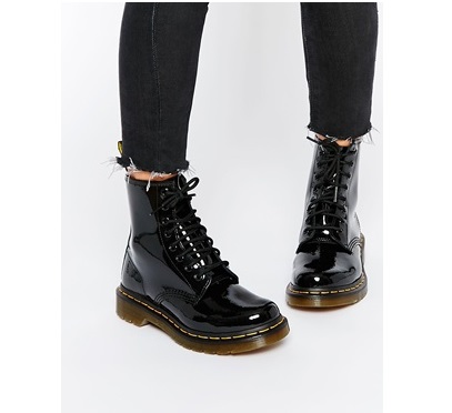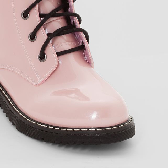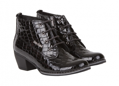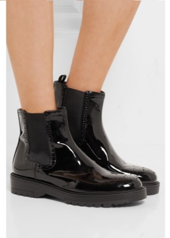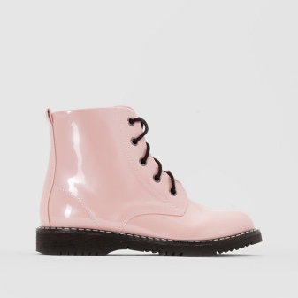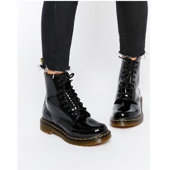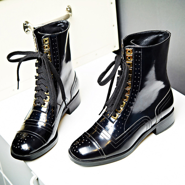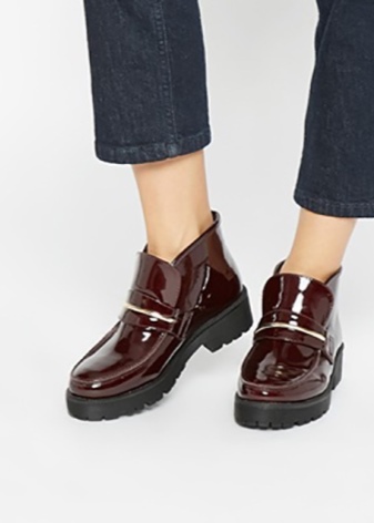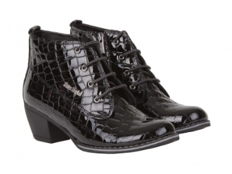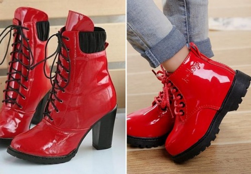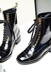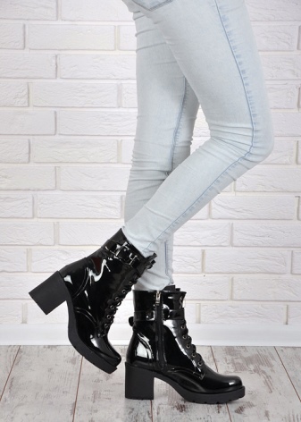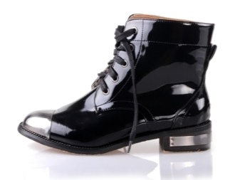 Varnish lace-up boots will look impressive with a short dress, trendy jeans, a strict suit.