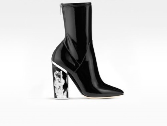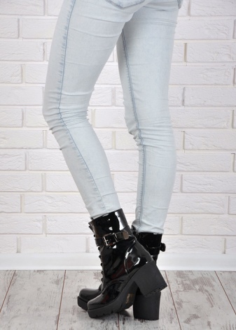 Lacquer boots with heels and for walking, complemented by jeans with a t-shirt and leather jacket matched to the color of the boots. You can choose the right one for yourself not only in color, model and accessories, but also in the form of heels, the variety of which is pleasantly surprising today.