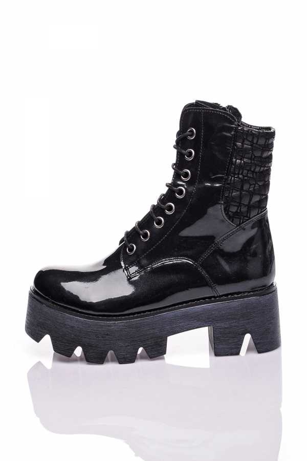 Lacquered lace-up boots are a modern and very practical piece of clothing that is appropriate to wear and to meet with friends, and to a party, and to work, and for a walk.