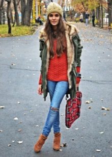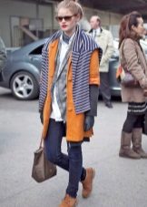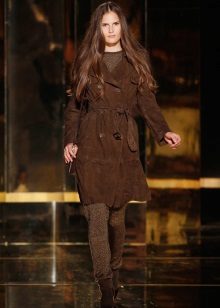 Outerwear is selected depending on the style of the whole image. Coats, bolonevye, leather jackets, cardigans, ponchos, fur coats, sheepskin coats - all this is perfectly combined with suede shoes.