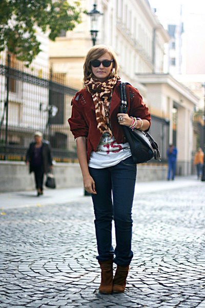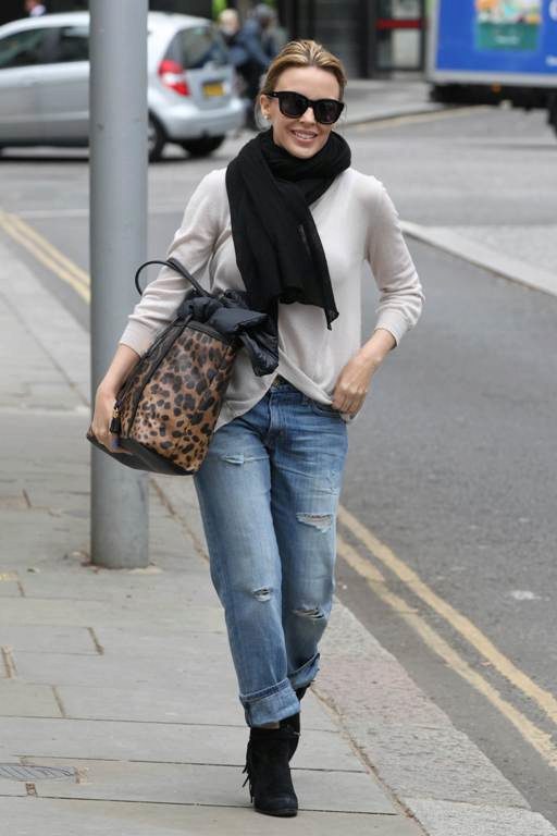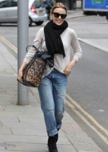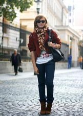 Oh, those red suede shoes, they do not give rest to many fashionable women! Buy them and take it easy, especially since they look so elegant in a laconic image with torn jeans. The casual style is nothing superfluous, everything is in its place. The red scarf puts the final chord, sounding with shoes in one key.