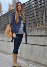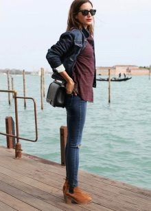 Suede shoes and jeans - one of the best fashion tandems.Studying, shopping, walking, meeting with friends - this duet is appropriate everywhere. The top is allowed from t-shirts to blouses, there are no restrictions.