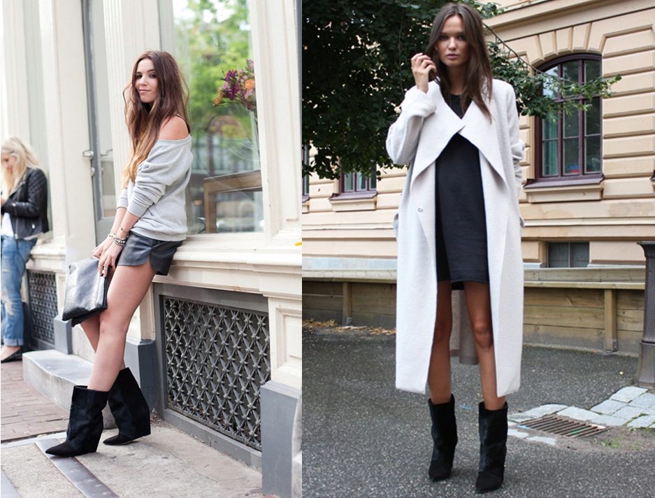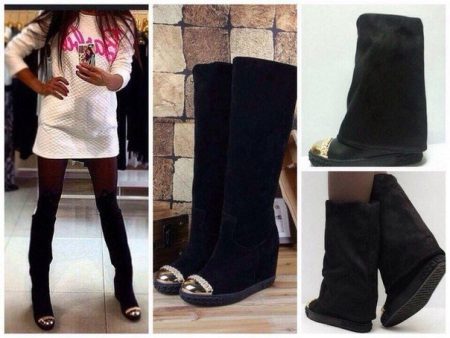- High boots are a cross between boots and short models. Those who like to wear both skirts and wide trousers will like it.