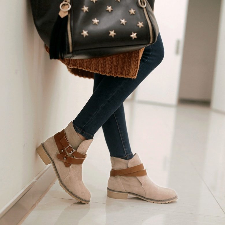 - Short suede boots will be a real salvation for girls and women, whose calves are quite voluminous. Many face this problem, boots often do not fit, just do not fasten. Shoes sit well on the leg, without squeezing the skin and not interfering with movement.