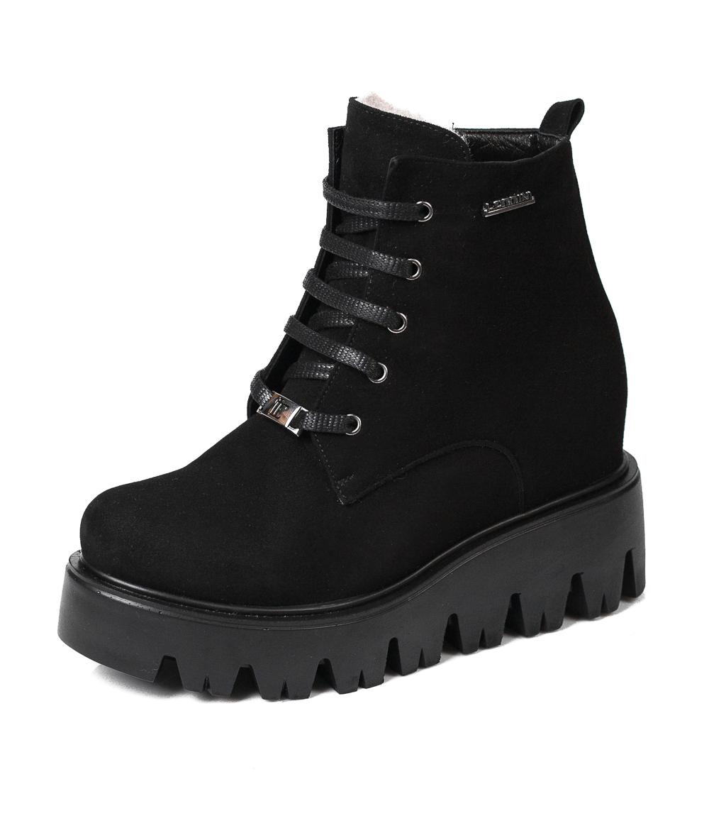 Spectacular black boots with a tractor sole with a lacquered top are a great option for everyday wear. The stability of the sole is achieved by distributing the load on the foot.