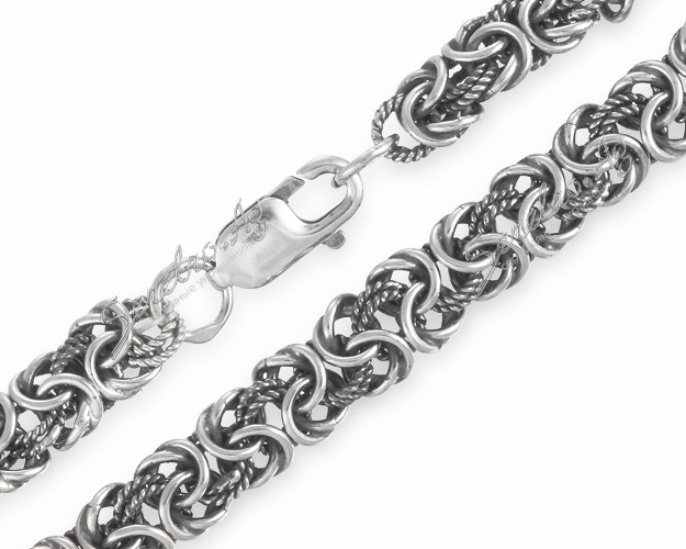 - "Royal". Ornate weave a large number of rings. This chain is also called "Byzantine", "Roman", "round", "imperial".