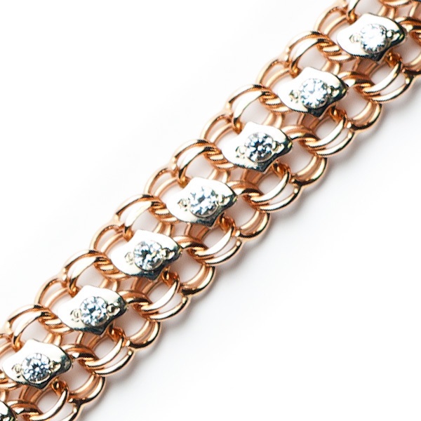 In addition, there are chains and Bismarck bracelets with various overlays: diamonds, semiprecious stones, and cubic zirconias.