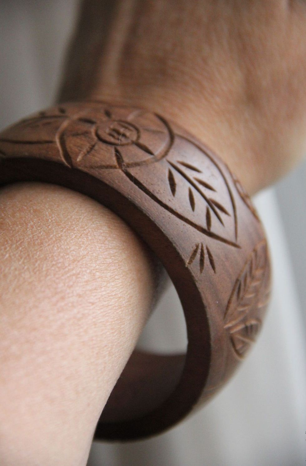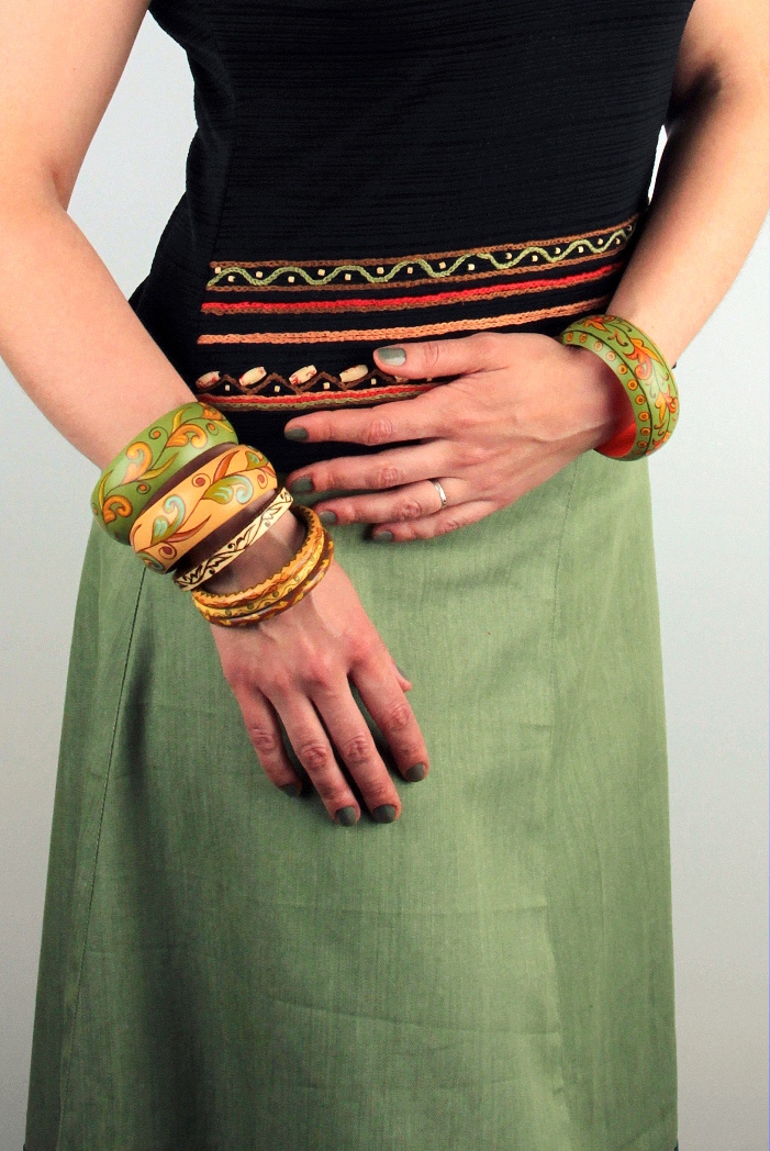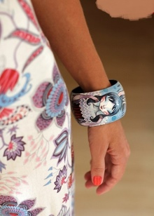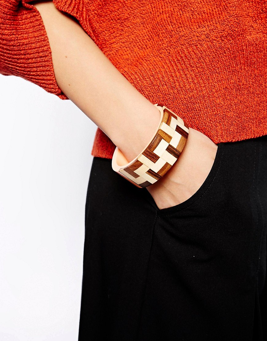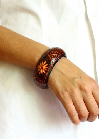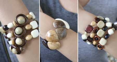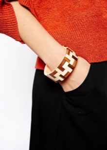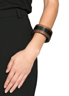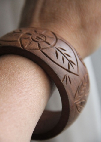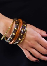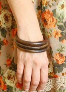A wooden bracelet with a light dress in ethnic style or with a rough knit sweater is a good example of stylish combinations.