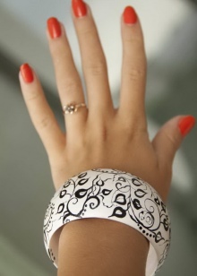 - Focusing on the details. The wide bracelet perfectly emphasizes the fragility and elegance of the wrist.