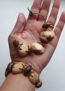 - Compatibility with other accessories. A wooden bracelet is a self-sufficient decoration, but if you like, you can combine it with something else.