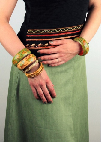 The list of clothes with which wooden bracelets are combined is small. But best of all they look with things from natural materials - cotton, flax, wool.