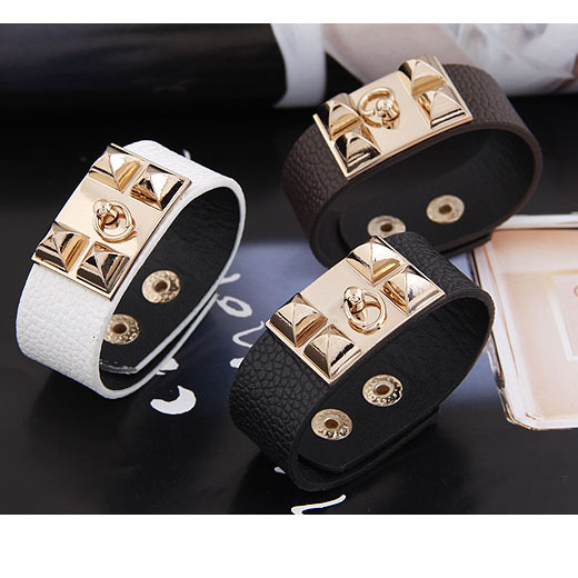 Popular bracelets of the brand are a leather strap and a metal rim with a clasp.