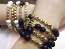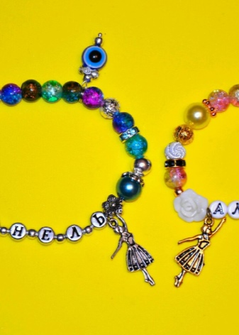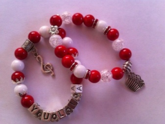 Bracelets made of glass and plastic beads look original and bright. These elements can be made in different colors alternating with each other. Named beaded bracelets are able to emphasize the natural charm of their owner and make her look delicate and charming.