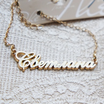 - Chain options are classic. They consist of links of the same or different sizes, supplemented with an insert in the form of a name.