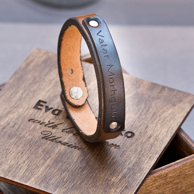 - Leather bracelets are created from a strip of leather (natural or artificial) or interlacing of thin leather braids.